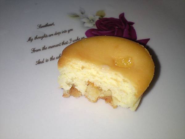 一打開盒 美麗黃澄澄的香濃起司球映入眼簾 裡面有 原味 蔓越莓 桔皮三種口味